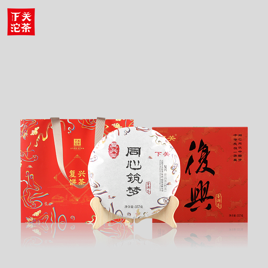 357克單盒裝復興餅茶 普洱茶(熟茶)(橙紅色版本)2025